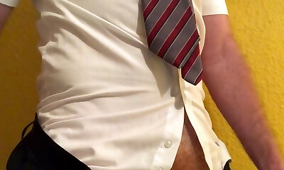 Wanking my uncut ginger cock in school uniform, spunking & eating my heavy load