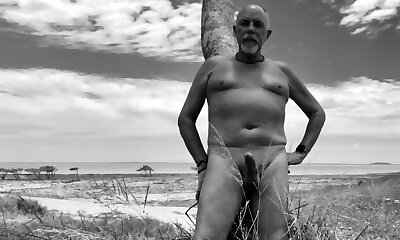 Playing outside at the beach bare and erect